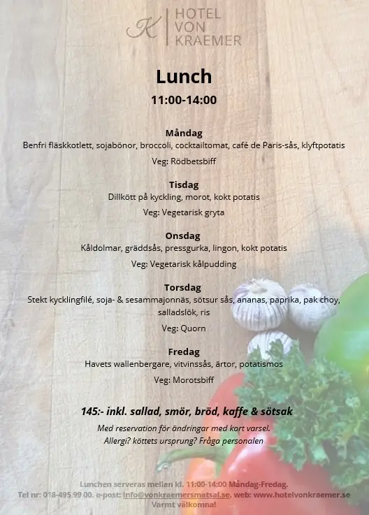 Vi löser er förfrågan gällande de flesta allergier och kostavvikelser, men ta kontakt med oss inför ditt besök.